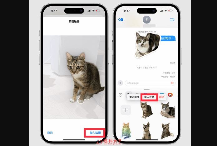 * Itu juga akan ditambahkan ke daftar Stiker. Anda dapat menambahkan efek jika Anda mau.