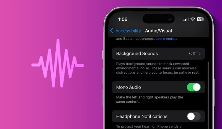 Mono audio adalah fitur berguna jika Anda hanya menggunakan satu earbud. Ini menggabungkan channel kiri dan kanan menjadi satu streaming dan dapat berguna untuk mendengarkan di lingkungan yang bising.